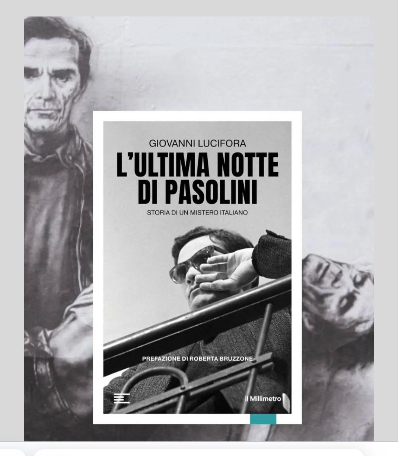 Di questo scrive Giovanni Lucifora nel libro L’ultima notte di Pasolini. Storia di un mistero italiano dove ci sono le ipotesi di questi cinquant’anni e i ragionamenti di oggi, degli amici di Pasolini, dell’avvocato del cugino, di una senatrice e di due giornalisti. Nessun delirio, nessun complotto, ragionamenti e se proprio complotto deve essere che sia pure, ma con le prove.