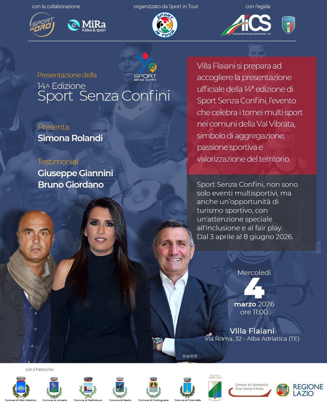 Giunge alla 14ª edizione “Sport Senza Confini”, il grande contenitore di eventi sportivi nato nel 2012 dalla collaborazione tra SSD Sport in Tour, ideata da Giampaolo Morsa, e il Consorzio Alberghiero Costa dei Parchi.